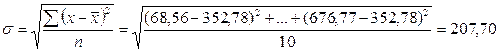 отклонение: Среднее квадратическое отклонение: Дисперсия: На основании среднего