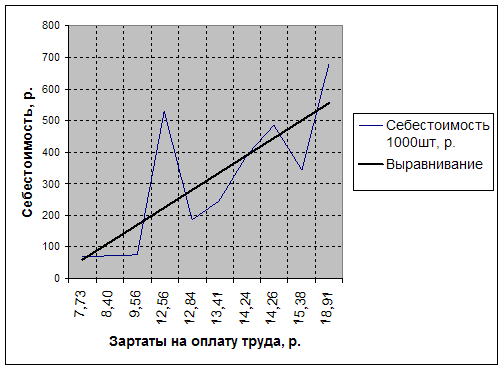 начала изучим связь между затратами на оплату труда и себестоимостью. Значение