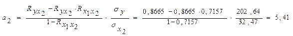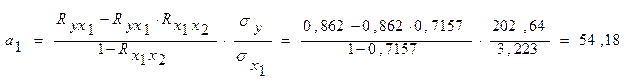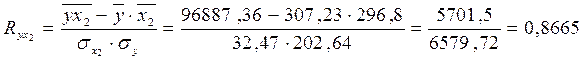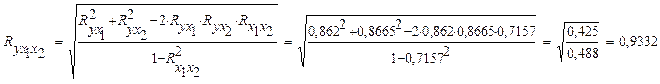 Расчеты показывают, что с увеличением затрат на заработную плату на 1 рубль себестоимость увеличивается на 54,18р., а также, что с увеличением продуктивности на 1 яйцо себестоимость повышается на 5,41р. Совокупный множественный коэффициент корреляции рассчитывается по формуле: