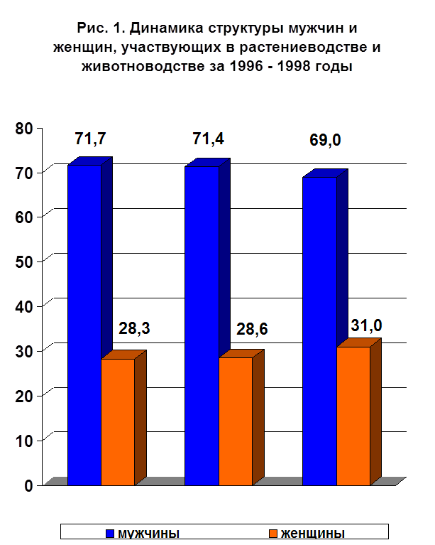 Проанализировав таблицу 4.1.1. можно сделать вывод, что среднегодовое количество работников, приходящихся на 100 га сельскохозяйственных угодий и 100 га пашни к 1998 году по сравнению с 1996 годом практически осталось прежним. При этом наличие сельскохозяйственных угодий на одного среднегодового работника также увеличилось на 0,6 га, уменьшилось на 9 человеко-дней отработанных в году одним работником.