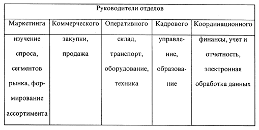 Основной задачей фирмы «Орикс» как предприятия оптовой торговли является закупка и продажа товаров. В соответствии с названными задачами предприятие подразделяется на функциональные сферы, деятельность каждой координирует соответствующий отдел. Таблица 1.2.1.