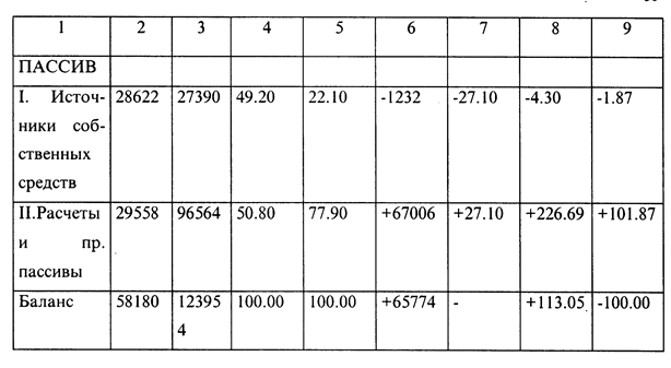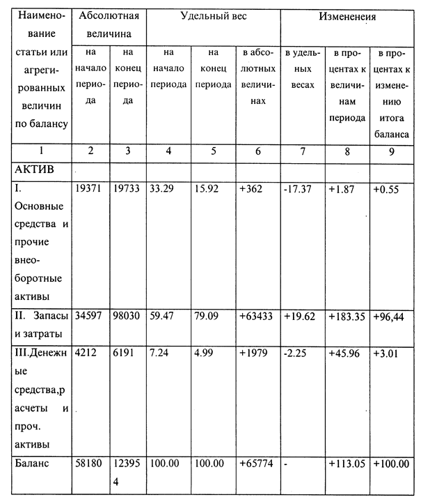 Функциональный отдел, занимающийся закупками и продажами (коммерческий отдел) подразделяется далее по ассортименту (товарным группам). Сфера ответственности разделена в соответствии с этими товарнымигруппами. Таким образом в фирме «Орикс» скоординирована закупка и продажа товаров по каждой товарной группе. Таблица 1.2.2. Схема функциональной структуры фирмы «Орикс». 000 «Орикс» являет собой тип предприятия, где подразделения формируются по ассортименту. Функциональный отдел, занимающийся закупками и продажей, далее подразделяется по ассортименту (товарным группам). Сфера ответственности разделена в соответствии с этими товарнымигруппами (например, овощи и фрукты, молочные продукты, мясные и колбасные изделия, мебель, бытовая техника и т.п.). Таким образом в фирме «Орикс» координируется закупка и продажа товаров по каждой товарной группе. Численность товарного подразделения в фирме «Орикс» составляет в среднем 15 человек. Для регулирования функциональных обязанностей персонала в фирме «Орикс» сформулированы и разграничены задачи, компетенция и сфера ответственности работника на каждом рабочем месте. Руководством 000 «Орикс» применяется принцип тождественности компетенции и ответственности. Каждый сотрудник фирмы несет ответственность за свои действия и деятельность, которую он осуществляет в соответствии с занимаемым рабочим местом. В фирме «Орикс» компетенция и ответственность делегируется подчиненным сотрудникам, хотя ответственность в целом несет делегирующая инстанция. Подобная практика нашла свое отражение в должностных инструкциях предприятия. Осуществление закупок зависит от текущей информации и продажах. Это означает, что здесь необходима хорошая организация производственного процесса. Фирма «Орикс» имеет два филиала: в г.г. Химки и Красногорск. Ввиду этого в момент открытия этих филиалов встал вопрос о централизованности или децентрализованности организации закупок. Было решено скомбинировать эти два варианта, т.к. централизованная закупка имеет такие преимущества как более дешевая закупка больших партий товаров и уменьшение необходимости в хранении на складе, а децентрализованная закупка позволяет обеспечить лучший учет региональный различий в поведении покупателей. 1.3. Анализ основных показателей производственно-хозяйственной и финансовой деятельности фирмы «Орикс» .1.3.1. Анализ и оценка управления финансовой деятельностьюфирмы «Орикс»Анализируя баланс, можно получить ряд важнейших показателей, характеризующих финансовое состояние. К ним относятся: · общая стоимость имущества предприятия, равная итогу баланса (строка 360); · стоимость иммобилизованных средств, равная итогу раздела 1 актива баланса (строка 080); · стоимость мобильных средств, равная итогу разделов II и III актива баланса (строка 180 -t- строка 330); · стоимость материальных оборотных средств, равная итогу раздела II актива баланса (стр. 180); · величина собственных средств предприятия, равная итогу раздела 1 пассива баланса (стр. 480); · величина заемных средств, равная итогу раздела II пассива баланса (стр. 770). . Изучение баланса предполагает изучение структуры и динамики финансового состояния предприятия. Изучение структуры баланса (вертикальный анализ) предполагает вычисление и рассмотрение удельного веса отдельных статей в итоге б