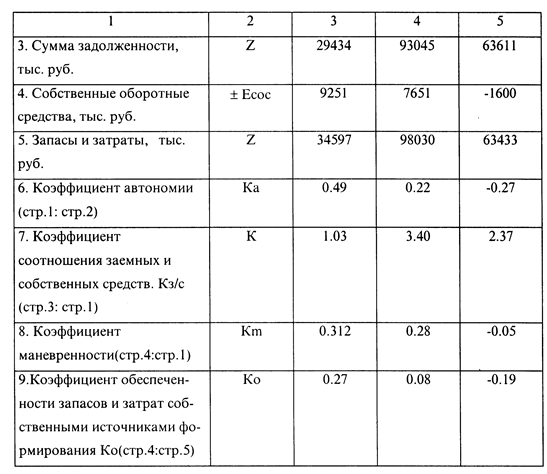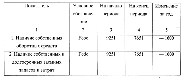 В табл. 1.3.1. сгруппированы данные, построенные на основе финансового отчета фирмы «Орикс». На основе этих данных здесь иллюстрируются последующие расчеты. Из данных табл. 1.3.1. видно, что за отчетный период имущество фирмы «Орикс» увеличилось на 65774 тыс. руб. и составило на конец периода 123 954 тыс. руб. Прирост имущества предприятия произошел, в основном, за счет прироста оборотных средств (+ 99.45»/о = 96.44 + 3.01), а точнее, за счет роста запасов и затрат (+ 96.44%). Лишь на 0,55»/о прирост имущества предприятия обусловлен увеличением основных средств и внеоборотных активов. В конце отчетного периода реальный вес основных средств и долгосрочных вложений уменьшился на 17.37%, а удельный вес материальных оборотных средств —увеличился на 19.62%. Доля денежных средств, расчетов и прочих активов снизилась на 2.25% и составила на конец периода 4.99% против 7,24% на начало периода. Увеличение имущества предприятия произошло только за счет увеличения обязательств предприятия (+ 101.87%). Собственные средства предприятия снизились на 1232 тыс. руб, что и привело к тому, что доля имущества, покрываемая собственными средствами, снизилась с 49.2»/о на начало отчетного периода до 22.10% на его конец. Подводя итоги первому этапу анализа, можно сделать вывод о том, что общая оценка финансового состояния анализируемого предприятия является неудовлетворительной, ибо за отчетный период оно «проедало» свои собственные средства. 1.3.2. Анализ финансовой устойчивости фирмы «Орикс»Обобщающим показателем финансовой устойчивости служит излишек или недостаток источников средств формирования запасов и затрат. Он рассчитывается как разница между величиной источников средств и величиной запасов и затрат. Таблица 1.3.2.1. Абсолютные показатели финансовой устойчивости за 1996 год