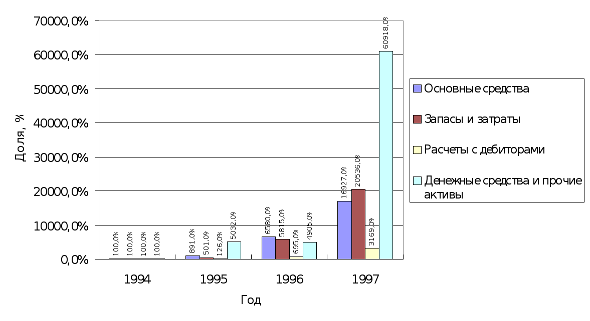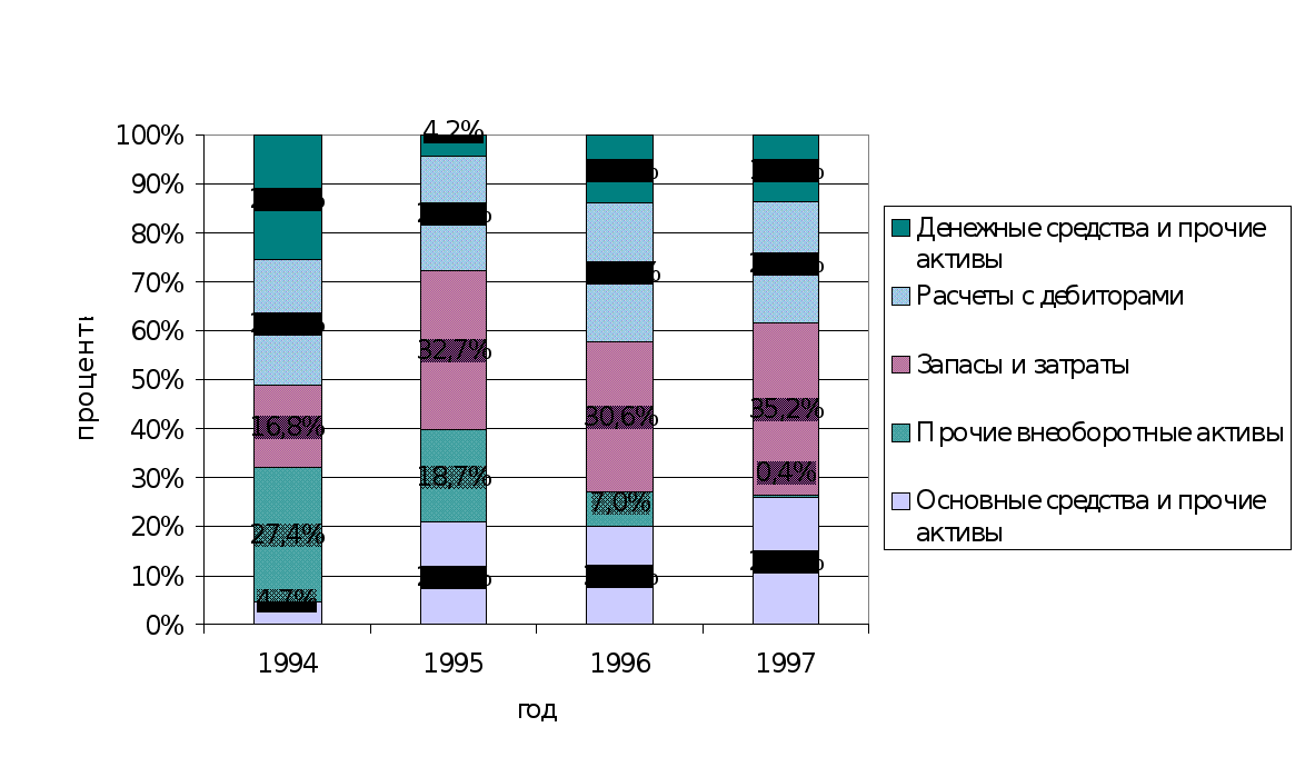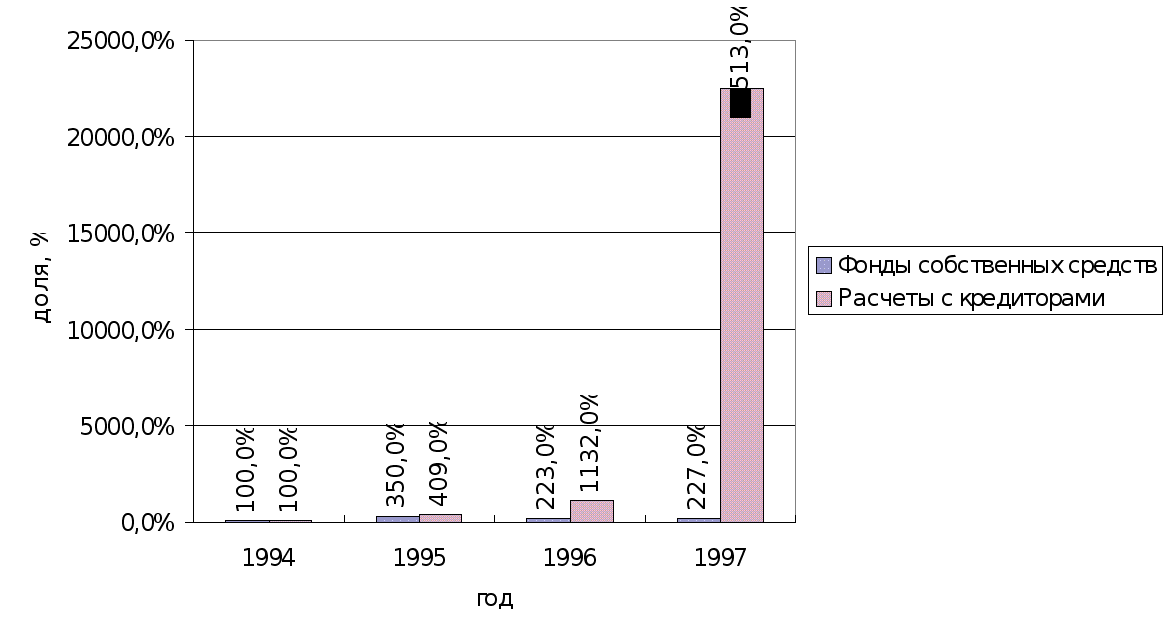 В 1997 году увеличилась прибыль по сравнению с 1994, 1995 годами. Стабилизируются потоки денежных средств. Их структура становится более рациональной .