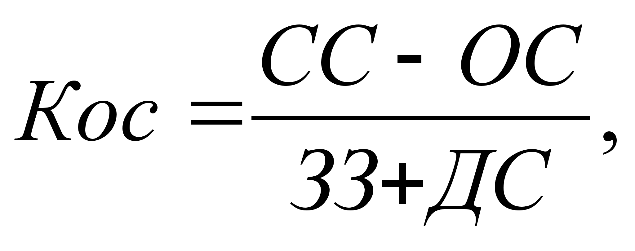 К где ЗЗ - запасы и затраты, тыс. рублей; ДС - денежные средства, расчеты и прочие активы, тыс. рублей; КБ - долгосрочные кредиты банков, тыс. рублей; ДЗ - долгосрочные займы, тыс. рублей; Дб - доходы будущих периодов тыс. рублей; Фп - фонды потребления тыс., рублей; Р - резервы предстоящих расходов и платежей, тыс. рублей. Коэффициент обеспеченности собственными оборотными средствами (Кос) рассчитывается по формуле;