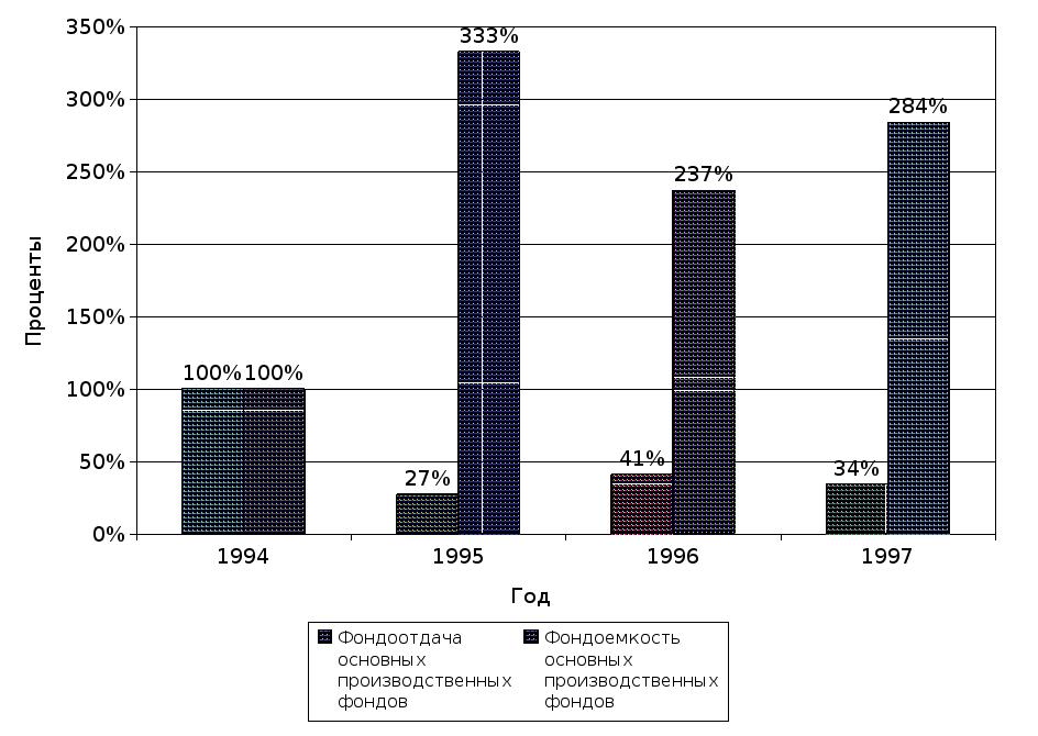 | Фондоемкость основных производственных фондов | 100% | 333% | 237% | 284% |