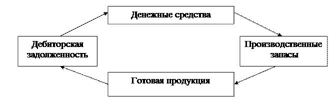 Рис. 2 Кругооборот текущих активов На ней мы видим, что денежные средства (наиболее ликвидные активы) превращаются в производственные запасы (медленно реализуемые активы). Следовательно, 14 444 руб., на которые уменьшились наиболее ликвидные активы в 2002 году, пошли на увеличение медленно реализуемых активов. А «чистое» увеличение медленно реализуемых активов равно 175 124 – 14 444 = 160 680 руб. или + 29%. И вклад медленно реализуемых активов в общее увеличение оборотных средств равен 55% (вместо 60% прироста) при оставшимся прежним вкладе быстро реализуемых активов в 45% прироста оборотных средств. Таким образом, налицо трансформация наиболее ликвидных активов в медленно реализуемые активы. В результате падает общая ликвидность оборотных средств. Применение использованного метода анализа дало небольшую корректировку (5%) оценки влияния факторов. Однако, важен сам принцип анализа, учитывающего реальную направленность денежных и материальных потоков взамен чисто математических методов анализа. С его помощью можно принимать более адекватные решения как в управлении активами, так и, например, в мотивации персонала путем выявления реальных заслуг того или иного структурного подразделения и корректировки выплат стимулирующего характера. Таблица 7 Структура оборотных средств по степени риска вложений