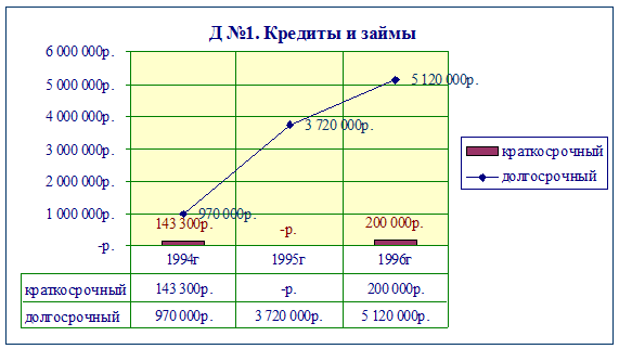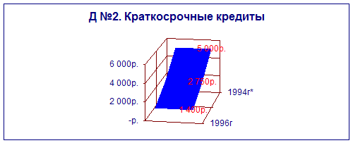 В Диаграмме №1 «Кредиты и займы» я привёл данные за три года. Причём я хотел бы сразу оговорить, что это суммарные цифры, т.е. показана общая сумма кредиты с динамикой роста. Исходя из диаграммы можно сказать, что на предприятии существует большая потребность в долгосрочном инвестиционном проекте большой стоимостью, финансирование которого происходило бы постоянно, но из-за невыгодности его воплощения в жизнь законным способом обе стороны – банк и предприятие – договорились о постоянном предоставлении долгосрочных кредитов на каких-либо формальных основаниях. Причём такая практика давно имеет место на большинстве российских предприятий.