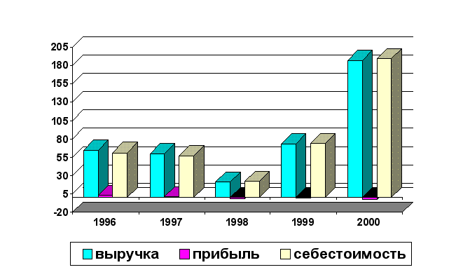Оценка прибыли или убытков проводится на основании данных формы № 2 «Отчет о прибылях и убытках». Прибыль отчетного года представляет собой сумму прибыли от продажи товарной продукции, товаров, услуг, реализации основных средств предприятия, прочих внереализационных доходов за вычетом внереализационных расходов. Для анализа составим таблицу о составе и динамике прибыли. Таблица 3.1.1Состав и динамика прибыли за 1996-2000гг.