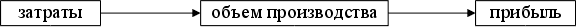 Необходимым условием получения прибыли является определение степени развития производства, обеспечивающая выручки от реализации над затратами по ее производству и сбыту. Главная факторная цепочка, формирующая прибыль может быть представлена схемой:
