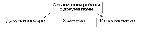 Рис. 2.1.2. Организация работы с документами Документооборот учреждения — это совокупность взаимосвязанных процедур, обеспечивающих движение документов в учреждении с момента их создания или поступления и до завершения исполнения или отправки[14]. В целях рациональной организации документооборота все документы распределяются по документопотокам:
