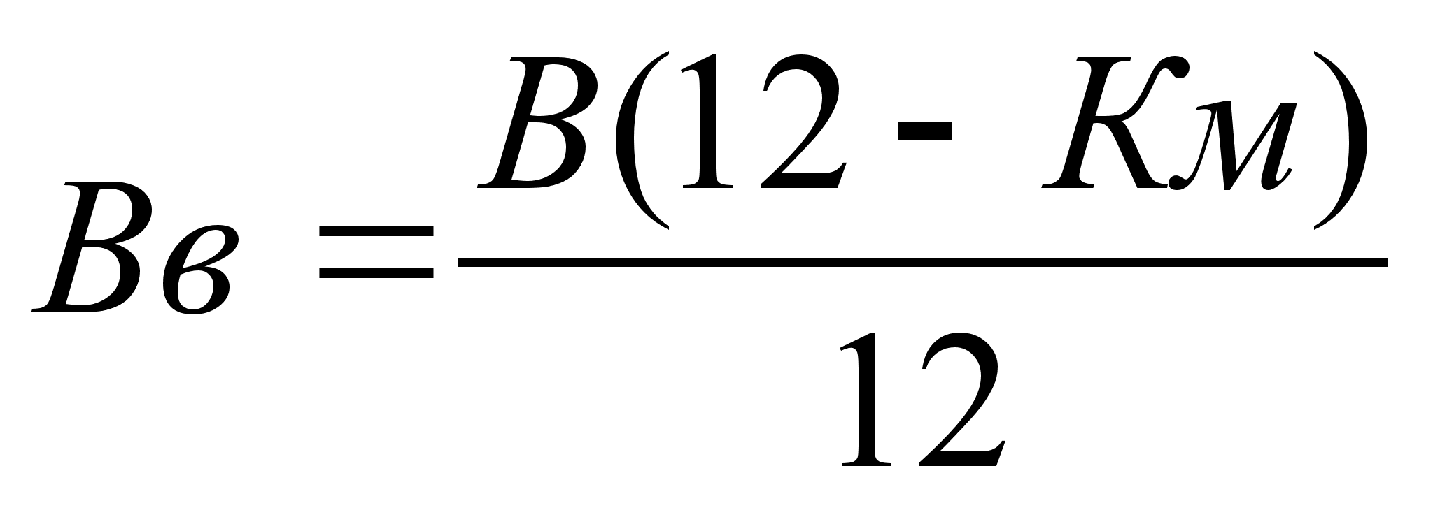 де В - первинна (відновна) вартість об`єкта ; Кф - кількість повних місяців функціонування у році. Середньорічна вартість об`єкта, що вибуває з експлуатації до закінчення року (Вв)включається за формулою :