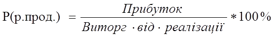 По дослідному хлібозаводу він склав у 1997 році – 0,74, а в 1998 році 0,88. Деяке підвищення цього коефіцієнта можна пояснити тим, що в 1998 році відбулося незначне збільшення додаткового капіталу і фондів нагромадження, а також зріс рівень виробничої потужності. Інший важливий коефіцієнт - рентабельність реалізованої продукції - (рентабельність продажів) розраховується по формулі: