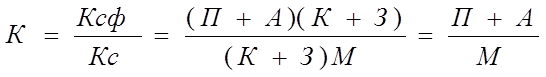 де П – прибуток, направлений у фонд нагромадження, А – амортизаційні відрахування. Даний коефіціент показує співвідношення джерел фінансових ресурсів, тобто у скільки разів власні джерела перевищують запозичені кошти. Коефіціент самофінансування характеризує деякий запас фінансової міцності акціонерного товариства. Чим більша величина цього коефіціента, тим вище рівень самофінансування. На дослідноу хлібозаводі він склав 0,87 – у 1997р. і 1,39 – у 1998р.. Отже, рівень самофінансування зріс, тобто об’єм власних джерел фінансування виробничо-торгівельного процесу заводу в 1,39 разу перевищує величину запозичених коштів. 3.Коефіціент стійкості процесу самофінансування (К):
