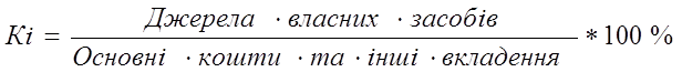 Коефіціент незалежності характеризує частку власних джерел у загальному обсязі джерела. 6. Коефіцієнт інвестування (власних джерел) (Кі):