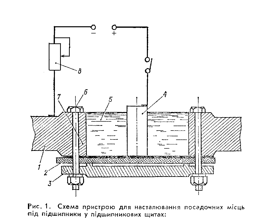Дійсно значення строку окупності відповідає економічним нормам, є економічно обгрунтваним. 6. Технологічний процес ремонту (відновлення) у чавунних підшипникових щитках посадочних поверхонь методом залізнінням 6.1. Основні відомості технологічного процесу Залізніння – має ряд переваг перед іншими процесами електролітичного осадження металів за рахунок застосування дешевих і розповсюджених матеріалів. При цьому вихід за стумом становить 80 – 90 %, твердість покриття до 7800 МПа. Є можливість одержання осадженого матеріалу товщиною до 2 мм.