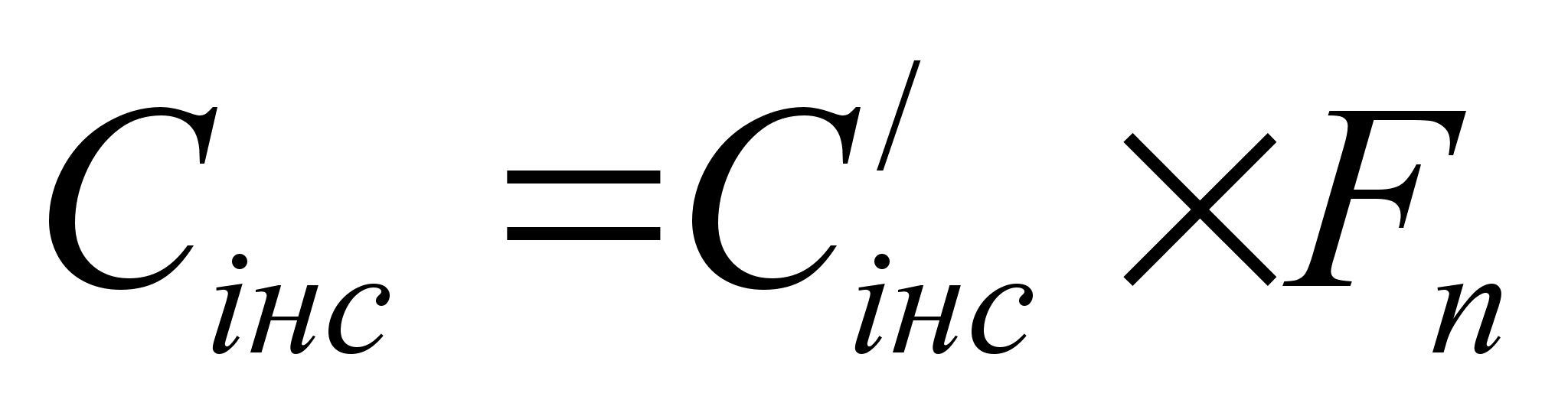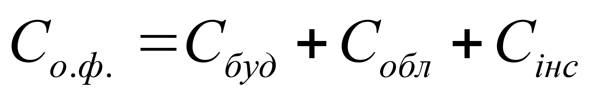 де С /буд; С /обл; С /інс – питома середня вартість будівельно-монтажних робіт, обладнання, інструменту, віднесена до 1 м2 зальної корисної площі, грн./ м2; Fп – зальна корисна площа майстерні, включаючи робочі, підсобні, складські, і допоміжні приміщення, 972 м2. Питома вартість залежить від призначення ремонтного підприємства і приймається з нормативних данних. Для майстерні господарства приймаються: С /буд = 105 грн./м 2 ; С /обл = 22,5 грн./м 2 ; С /інс = 7,5 грн./м 2. Сбуд = 105 • 972 = 102060 грн. Собл = 22,5 • 972 = 21870 грн. Сінс = 7,5 • 972 = 7290 грн. Со.ф. = 102060 + 21870 + 7290 = 131220 грн. 5.2. Розрахунок собівартості ремонтованого об`єкту Для майстерні господарства, що ремонтує машини не для збуту розраховується так звана цехова собівартість, яка враховує тільки напрямні та загальновиробничі накладні витрати. Загальногосподарські і позавиробничі накладні витрати не рахуються, так як вини входять в собівартість основної продукції господарства (зерна, м`яса, молока та інше). Цехова собівартість ремонту розраховується за формулою: