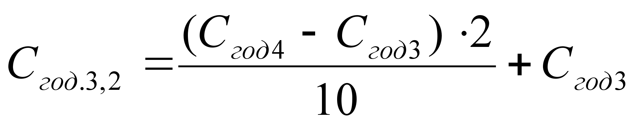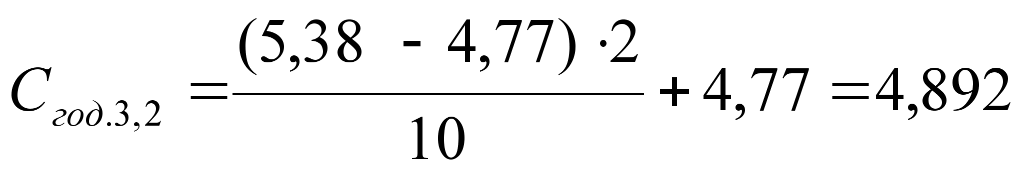 Сп = Свир + Сзч + Срм + Скооп + Сзаг.вир. ; (5.5) де Свир – заробітна платня робітників, зайнятих на ремонті об`єкту з нарахуваннями, грн.; Сзч; Срм – витрати, відповідно на купівлю запасних частин і ремонтних матеріалів, грн.; Скооп – витрати на оплату виробів (вузлів, агрегатів), які надходять у порядку кооперації, грн.; Сзаг.вир. – вартість загальновиробничих накладних витрат, грн.. Свир = Со.вир.+ Сд + Ссоц , (5.6) де Со.вир – основна заробітна платня робітників, зайнятих на ремонті об`єкту, грн.; Сд – додаткова заробітна платня, віднесена до одного об`єкту, грн.; Ссоц – відрахівання на соціальне страхування, грн. Оскільки в майстернях господарств ремонтується різноманітний парк машин, до того ж здійснюються різні види ремонтів і ТО, рекомендується визначити собівартість одного наведеного, або умовного ремонту. Розраховуючи інші техніко-економічні показники, що характеризують виробничу діяльність майстерні, продукція підприємства виявляється також в наведених або умовних ремонтах. Основна заробітна платня робітників, зайнятих на ремонті об`єкту визначається за формулою: Со.вир = 0,01 • tH • Cгод • Кt , (5.7) де tH – норми часу, чисельно рівні трудомісткості ремонту машини-представника, 2178,год.; Cгод – годинна тарифна ставка, що визначається по середнім розрядам робітників, коп; Кt – коефіцієнт, що враховує додаткову платню до основної заробітної плати за понаднормову та іншу роботу, Кt = 1,025....1,03. Середній розряд робіт, щодо ремонту машин в майстернях господарства орієнтовано можна приймати рівним Рср = 3,2. Погодинна тарифна ставка визначається за середнім розрядом робіт шляхом інтерполяції годинних тарифних ставок двох суміжних розрядів. Так годинна тарифна ставка розряду визначається з формули: де Сгод4; Сгод3; Сгод3,2 – годинна ставка 3 – го, 4 – го, 3,2 – го розрядів відповідно, коп.; Сгод4 = 5,38; Сгод3 = 4,77.