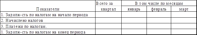 Задолженность по налогам.Таблица 8, руб.