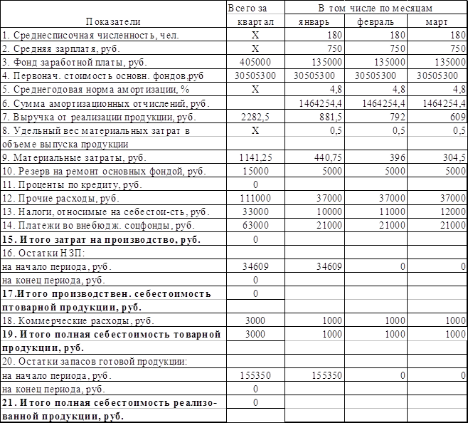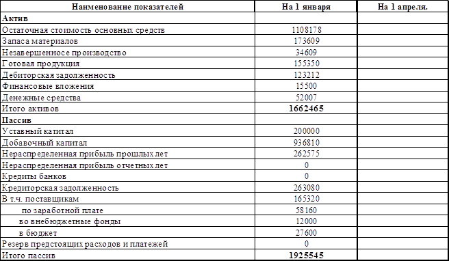 Практическая работа. Целью данной курсовое работы является проверка знаний в области финансового прогнозирования. В ходе ее выполнения закрепляются навыки по подготовке бюджетов и составлению финансового раздела бизнес-плана организации. 1. На основании данных к курсовой работе необходимо: · Рассчитать объем реализации за 1 квартал (табл. 1) · Составить план расходов по производству металлоизделий ОАО «Волга» за 1 квартал (табл. 2) · Рассчитать норматив оборотных средств в запасах НЗП. · Определить норматив оборотных средств в запасах готовой продукции на конец планового периода. · Определить сумму дебиторской задолженности на конец 1 квартала (табл. 3). · Определить сумму задолженности по оплате труда персонала (табл. 4). · Рассчитать сумму закупок материалов (табл. 5) и размер кредиторской задолженности на конец 1 квартала (табл. 6) · Определить валовую и чистую прибыль завода и составить прогноз о прибылях и убытках за 1 квартал (табл. 7). · Рассчитать сумму задолженности завода по налогам на конец 1 квартала (табл. 8). · На основании выполненных расчетов составить Кэш - Фло (табл. 10) и баланс ОАО "Волга" на 1 апреля (таил. 11). 2. Составить план финансирования капитальных вложений (табл. 12), прироста потребности в нормируемых оборотных средствах (табл. 13), план финансирования прироста средств в расчетах и денежных средствах (табл. 14). 3. Составить проверочную шахматную таблицу (для проверки соответствия источников финансирования произведенным затратам) - табл. 15. 4. На основании дополнительных данных принять решение о возможности предоставления скидки клиентам и изменении . условии расчетов с поставщиками и подрядчиками. Исходные данные баланса на 1 января.