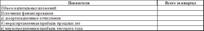 План финансирования капитальных вложений.Таблица 12, руб.