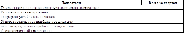 План финансирования прироста нормируемых оборотных средств.Таблица 13, руб.