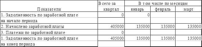 Задолженность по заработной плате.Таблица 4, руб.