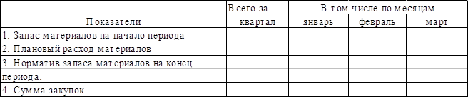 План закупок материалов.Таблица 5, руб.