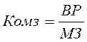 1. Коефіцієнт загальної оберненості капіталу (Коз) обчислюється як відношення виручки від реалізації (ВР) до середньої вартості загального капіталу за певний період (ЗК): Коефіцієнт відображає швидкість обороту (кількість оборотів за період) загального капіталу підприємства. Його зростання означає прискорення кругообігу засобі підприємства або зростання цін (у випадках пониження рентабельності фірми). За звітний період швидкість обертання загального капіталу АТ „Електромех” уповільнилася (на 1,313 оберти) 2. Коефіцієнт оберненості мобільних засобів (Ком) являє собою відношення виручки від реалізації до середньої за період величини мобільних засобів (запаси і затрати, грошові кошти, розрахунки, інші оборотні активи) по балансу (МК) : Коефіцієнт показує швидкість обороту усіх мобільних (як матеріальних так і нематеріальних) засобів підприємства. Зростання цього показника характеризується позитивно. Швидкість обороту усіх мобільних засобів АТ „Електромех” незначно уповільнилася. 3. Коефіцієнт оберненості матеріальних оборотних коштів (Комз) обчислюється як відношення виручки від реалізації до середньої за період вартості запасів і затрат по балансу (МЗ) : Коефіцієнт відображає число оборотів запасів і затрат фірми. Зниження цього коефіцієнта свідчить про відносне збільшення виробничих запасів, незавершеного виробництва або про зниження попиту на готову продукцію(у випадку зменшення оберненості готової продукції). Підприємство АТ „Електромех” збільшило обсяги виробничих запасів (на 0,1) що можливо пов’язано з підвищенням попиту на її продукцію. 4. Коефіцієнт оберненості готової продукції (Когп) визначається як відношення виручки від реалізації продукції до середньої за період величини готової продукції (ГП): Коефіцієнт відображає швидкість обороту готової продукції. Його зростання свідчить про підвищення попиту на продукцію, а зменшення – про збільшення залишків готової продукції у зв’язку із зниженням попиту на продукцію. Цей показник значно виріс (на 9,9 оберти) що свідчить про підвищення попиту на продукцію АТ „Електромех” (його збільшення може бути пов’язаним з більш вигідним для покупців придбанням ГП у комерційний кредит). 5. Коефіцієнт оберненості дебіторської заборгованості (Кодз) визначається як відношення виручки від реалізації до середньої за період дебіторської заборгованості (ДЗ): Коефіцієнт свідчить про розширення або зниження комерційного кредиту, що надає підприємство. Зростання означає збільшення швидкості сплати заборгованості підприємству , зменшення продажу в кредит. Зниження показника свідчить про збільшення обсягу кредиту , що надає підприємство, тобто зростання купівлі продукції в кредит покупцям. На АТ „Електромех” збільшилися обсяги продажу ГП в кредит але у незначному обсязі (Кодз збільшився на 0,1 оберти) 6. Середній термін обороту дебіторської заборгованості (тривалість періоду обороту в днях ) (Тобд) як відношення календарного фонду часу за певний період (наприклад, за рік – 365 днів) до коефіцієнту оберненості дебіторської заборгованості (Кодз):