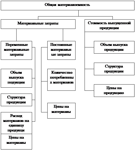 В частности на ЧП СПФ «АГРО» «МСЗ» используется краткая модель для анализа обобщающего показателя материалоемкости, в которой факторами выступают числитель и знаменатель расчетной формулы материалоемкости: изменение материальных затрат; изменение объема продукции. При этом упускается из виду, что является причиной, а что – следствием. Как уже указывалось на показатель материалоемкости продукции в данном случае влияют два фактора: изменение материалоемкости по прямым материальным затратам и изменение коэффициента соотношения всех материальных затрат и прямых материальных затрат. Математически данная факторная модель может быть выражена следующим образом: