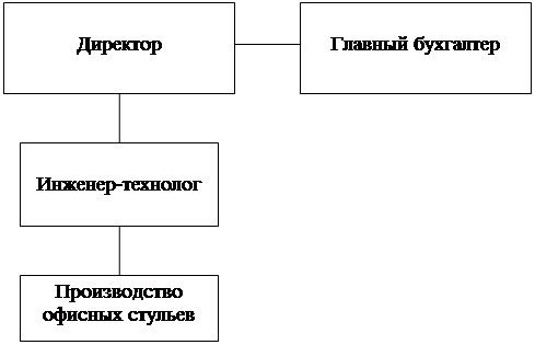 Рис. 1.1. Структура предприятия ООО «Падишах-Комфорт» Режим работы предприятия: 5-дневная рабочая неделя в 2 смены по 8 часов. Число календарных дней в году - 365, праздничных – 15 дн/год, выходных – 104 дн/год, число дней планового ремонта – 10 дн/год. Количество предпраздничных дней (сокращение смены на 1 час) – 9 дн/год. Фонд рабочего времени: Фрв = 365 – (15 + 104 + 10 ) = 236 дн/годФрв = 236 дн/год * 8 час/см * 2 см – 9 дн/год * 1 час * 2 см = 3758 час/год1.2. Описание продукцииПредприятие выпускает офисную мебель: стул офисный. В дальнейшем, при налаживании работы предприятия планируется выпуск следующей номенклатуры: кресло офисное, стол журнальный, стол письменный, стол офисный, подставки под теле-видио-аппаратуру, столы под оргтехнику. Параметры выпускаемой продукции Стул офисный модели «ZIG-ZAG» с подлокотниками. Основой конструкции является каркас из гнутой стальной трубы. Дефицитные материалы не используются. Покрытие – винилискожа различных расцветок по желанию покупателей. Сидение, спинка и подлокотники стула – мягкие (проставлен поролон). Все материалы стула офисного экологически чистые. Высота стула до сиденья - 470 мм. Высота спинки стула от сиденья - 500 мм. Высота подлокотников - 200 мм. Ширина стула - 430 мм. Глубина посадки стула - 420 мм. Планируемая программа выпуска и реализации продукции в 2002 г. – 12 000 штук стульев офисных «ZIG-ZAG». Месячный объем производства и реализации – 1 000 шт. Возможные вариации формы офисных стульев модели «ZIG-ZAG»: