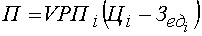 Если предприятие производит неоднородные виды продукции, тогда структура реализованной продукции определяется отношением каждого вида продукции в оценке по плановой себестоимости к общему объему продаж продукции в той же оценке. В этой ситуации для расчета влияния структурного фактора на изменение общей суммы прибыли используется модель г Следует проанализировать также выполнение плана и динамику прибыли от реализации отдельных видов продукции, величина которой зависит от трех факторов первого порядка: объема продажи продукции (VРПi), себестоимости (Зедi) и среднереализационных цен (Цi). Факторная модель прибыли от реализации отдельных видов продукции имеет вид