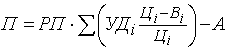 Средняя доля маржинального дохода в выручке (Ду) в свою очередь зависит от удельного веса каждого вида продукции в общей сумме выручки (УДi) и доли маржинального дохода в выручке по каждому изделию (отношение ставки маржинального дохода к цене):