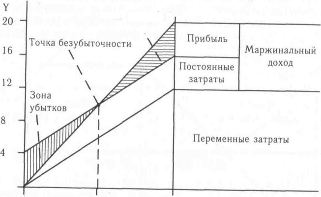 Сама точка безубыточности имеет небольшое практическое значение. Внимание обычно обращают на зону получения прибыли и убытков.