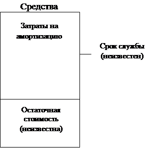 В методе прямолинейной амортизации сумма ежегодных расходов на амортизацию определяется путем умножения затрат на амортизацию на норму амортизации. Т. е. если затраты на амортизацию равны $9,000, а норма амортизации — 20%, то сумма ежегодных расходов на амортизацию составит $1,800. Факторы, оказывающих влияние на амортизацию средств: 1) первоначальная стоимость; 2) остаточная стоимость; 3) срок службы. Показанная ниже диаграмма иллюстрирует, какие из факторов амортизации являются определенными (известными), а какие — нет.