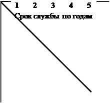 Остаточнаястоимость $ 2,000 Если остаточная стоимость вычитается из общей стоимости основных средств, то результат называется затратами на амортизацию. Предположим, что предприятием приобретен автомобиль за $10,000 с ожидаемым сроком службы 6 лет и ожидаемой остаточной стоимостью $1,000. Тогда сумма $10,000 представляет собой общую стоимость автомобиля, а сумма $9,000 – затраты на его амортизацию. Метод прямолинейной амортизации Покажем в виде графической зависимости процесс амортизации средств производства со следующими характеристиками: • себестоимость—$10,000; • остаточная стоимость— $0; • срок службы — 5 лет.