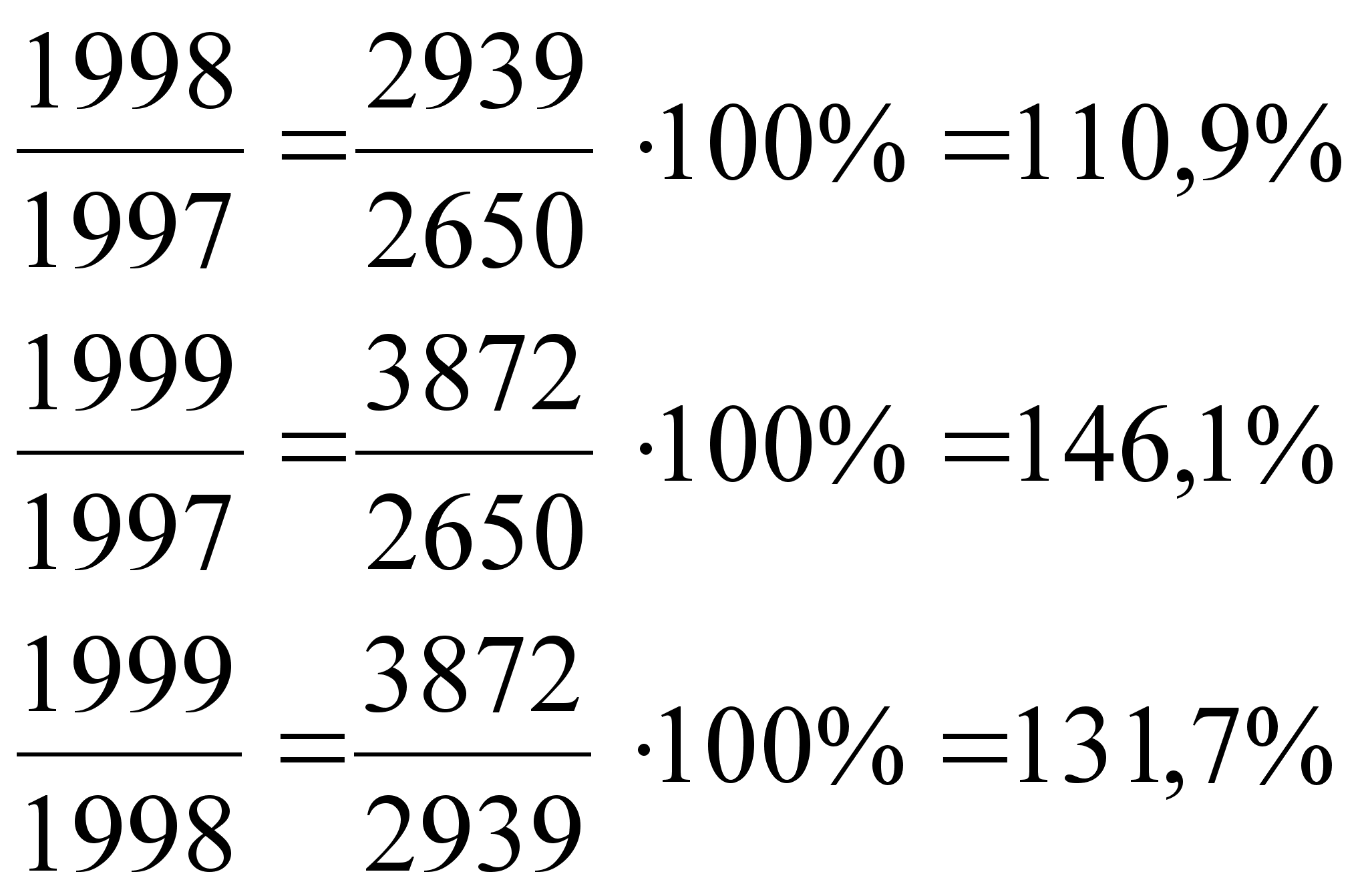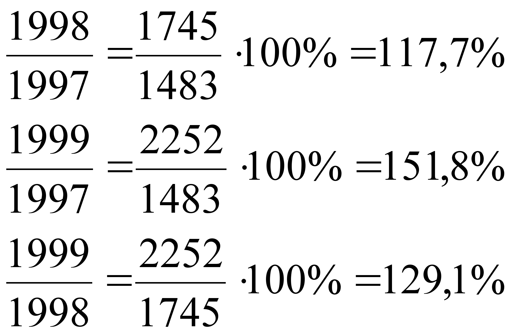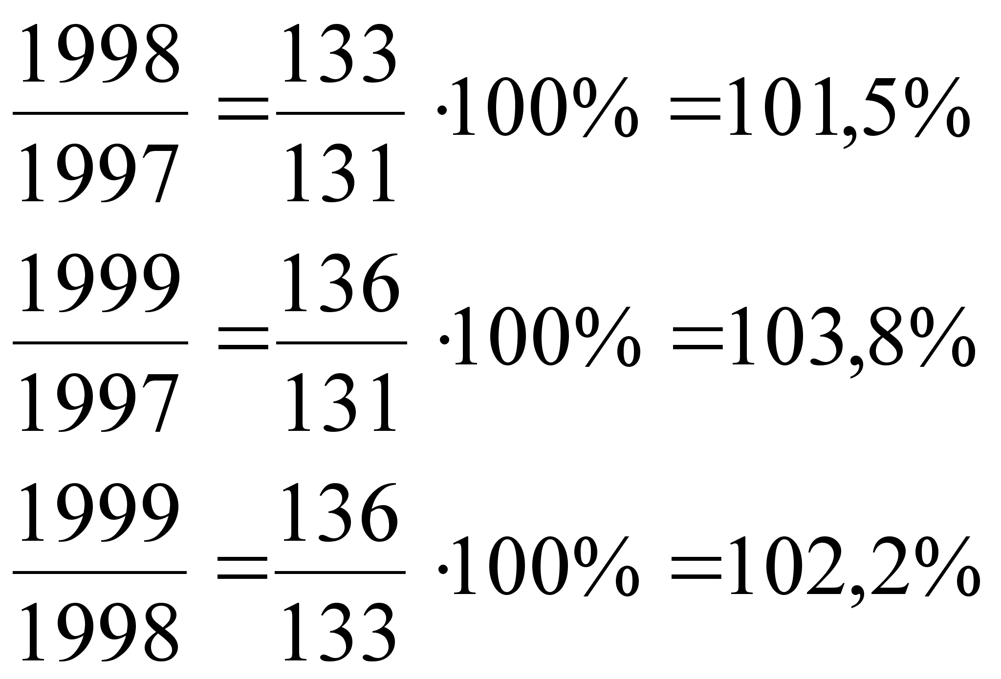 Численность за 9 месяцев 1998 г. в сравнении с таким же периодом 1997 г. увеличилась на 1,5 %. За этот же период 1999 г. в сравнении с 1997 г. на 3,8 %, в сравнении с 1998 г. на 2,2 %. Т.е. можно сделать вывод о том, что ежегодно, хоть и незначительно, численность увеличивается.