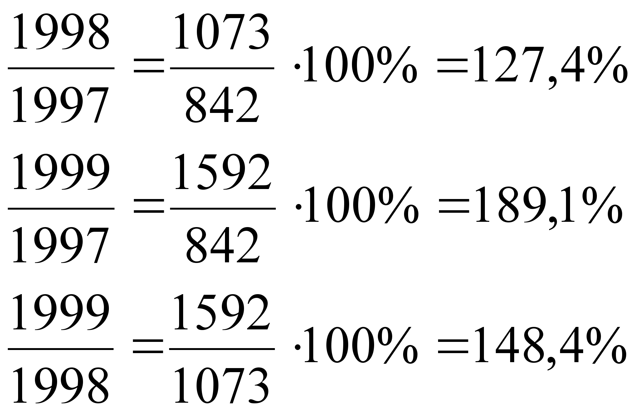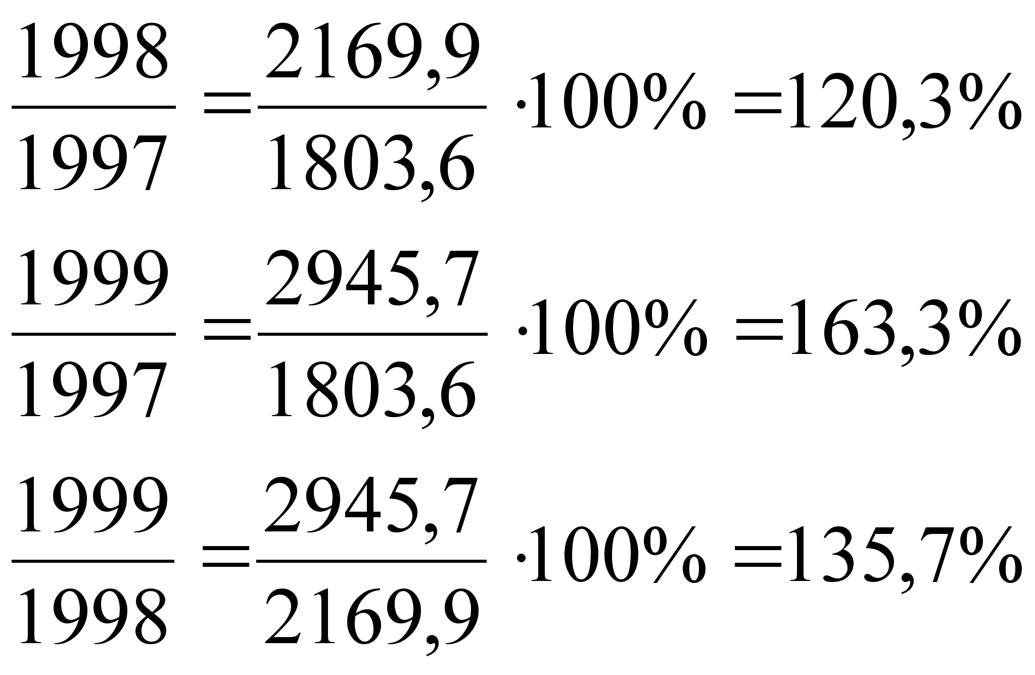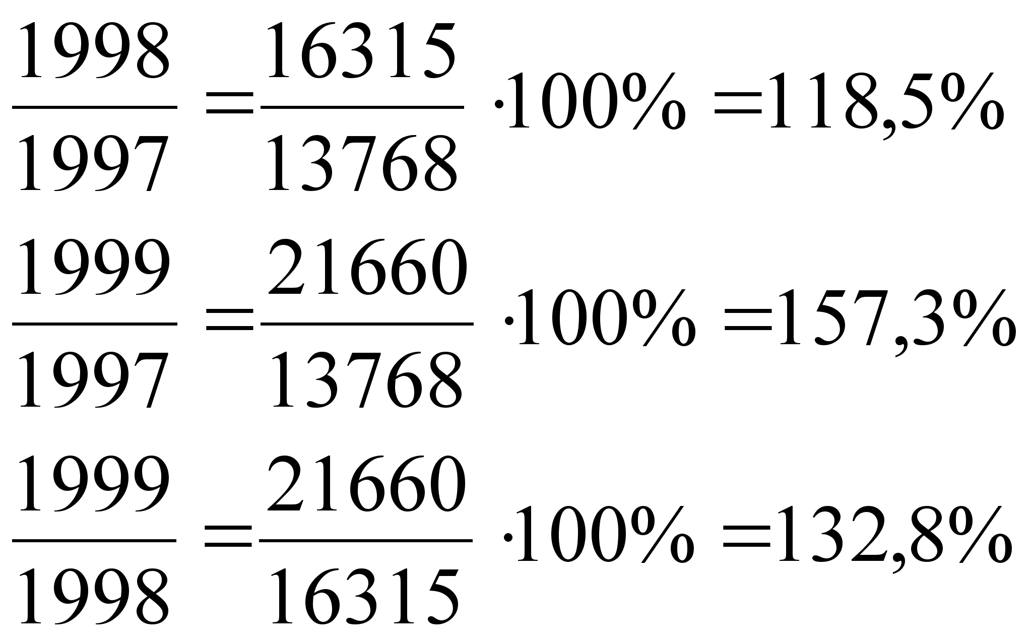 Численность за 9 месяцев 1998 г. в сравнении с таким же периодом 1997 г. увеличилась на 1,5 %. За этот же период 1999 г. в сравнении с 1997 г. на 3,8 %, в сравнении с 1998 г. на 2,2 %. Т.е. можно сделать вывод о том, что ежегодно, хоть и незначительно, численность увеличивается.