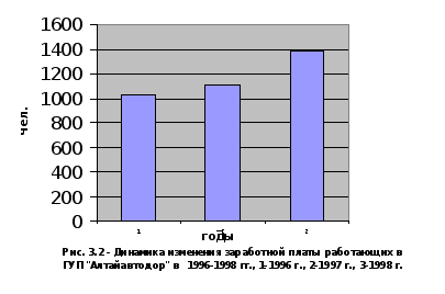 Анализ оплаты труда в данной главе рассмотрен по персоналу всего объединения и аппарату управления. В данном случае очень важно рассмотреть динамику фонда оплаты труда и факторы влияющие, на его изменение. Такими факторами являются: среднемесячная заработная плата и численность персонала. Таблица 3.1 Основные показатели работы объединения ГУП «Алтайавтодор» в 1996-1998 гг.