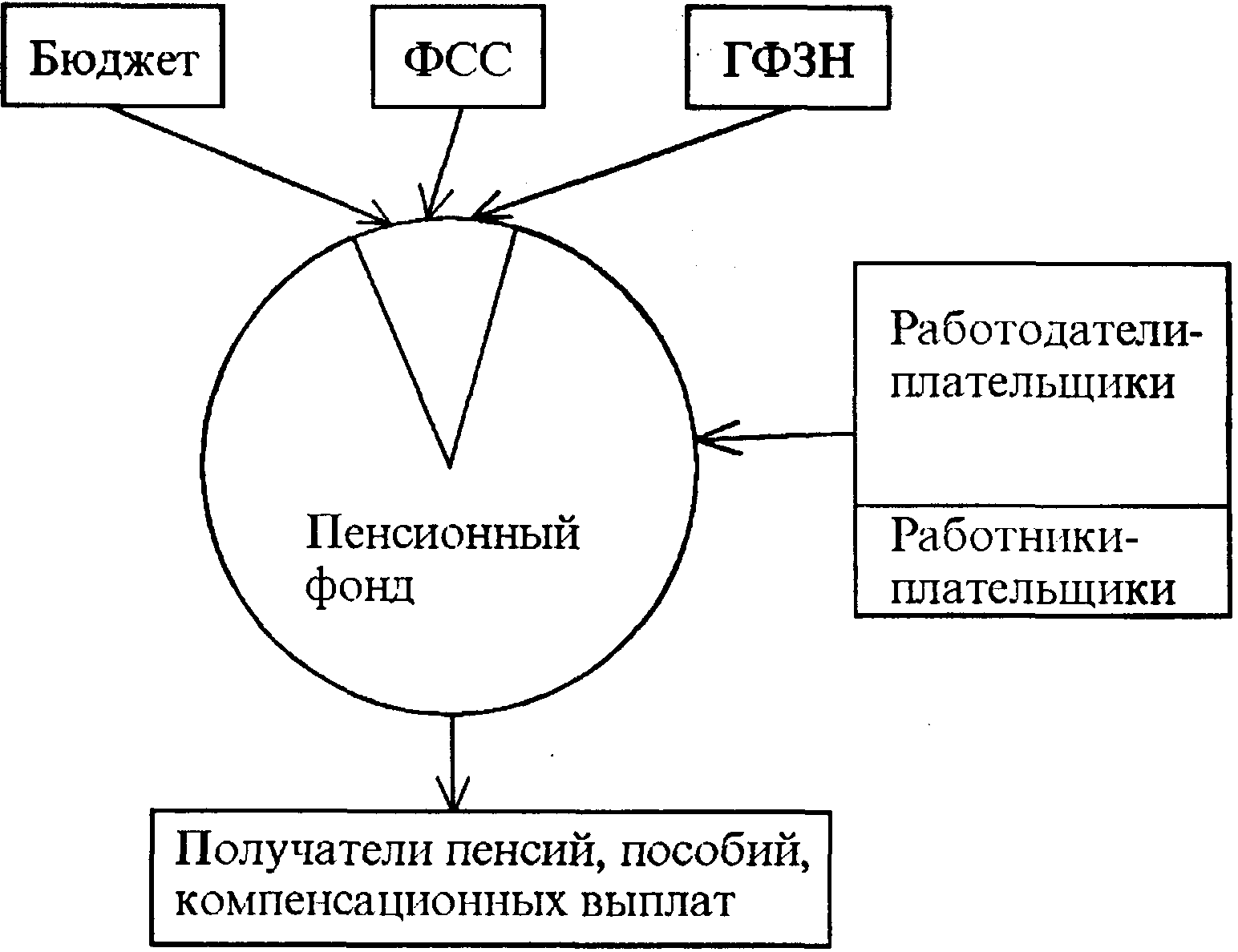 Блок-схема финансовых потоков ПФР представлена на рис. 3. Она отражает не только направления движения средств, но и примерные их пропорции.