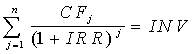 поток, 7. 5. Внутренняя норма прибыльности (IRR) По определению, внутренняя норма прибыльности (иногда говорят доходности) (IRR) - это такое значение показателя дисконта, при котором современное значение инвестиции равно современному значению потоков денежных средств за счет инвестиций, или значение показателя дисконта, при котором обеспечивается нулевое значение чистого настоящего значения инвестиционных вложений. Экономический смысл внутренней нормы прибыльности состоит в том, что это такая норма доходности инвестиций, при которой предприятию одинаково эффективно инвестировать свой капитал под IRR процентов в какие-либо финансовые инструменты или произвести реальные инвестиции, которые генерируют денежный поток, каждый элемент которого в свою очередь инвестируется по IRR процентов. Математическое определение внутренней нормы прибыльности предполагает решение следующего уравнения