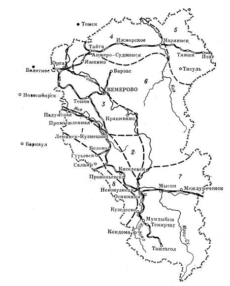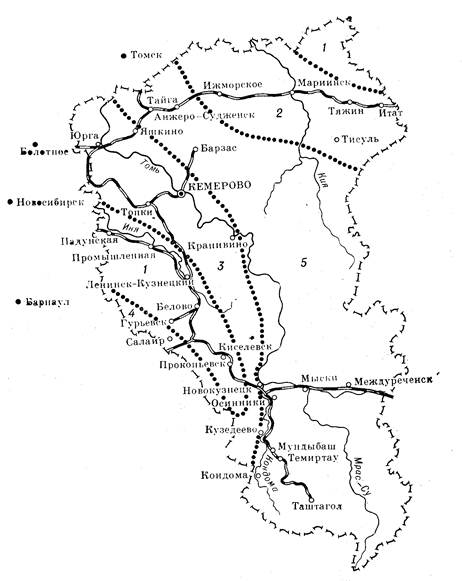 В Кемеровском подрайоне (2а) загрязнение происходит в основном из-за выбросов химической промышленности. Большинство предприятий в Кемерово располагаются в центральной, юго-западной и других частях города, вредные выбросы которых при господствующих юго-западных, южных и юго-восточных ветрах распространяются почти на всю его территорию. Кроме того, в этом процессе большое значение имеют такие факторы, как сложная орография города, его объемно-планировочная организация, окружающий ландшафт и т. д. Таким образом, значительные валовые выбросы в данном подрайоне, отсутствие на многих предприятиях санитарно-защитных зон и эффективных очистных сооружений приводит к загрязнению атмосферного воздуха. Здесь уровень загрязнения атмосферного воздуха по таким ингредиентам, как сажа, фенолы, двуокись азота и окись углерода, несколько ниже, чем в подрайоне 1а. Киселевско-Прокопъевский подрайон (3а) характеризуется загрязнением атмосферного воздуха пылью, сажей, окисью углерода и фенолами, концентрации которых значительны. Это обусловлено в основном выбросами предприятий угольной промышленности. Загрязняют атмосферный воздух в данном подрайоне котельные шахт. При ведении горных работ открытым и подземным способом нарушается целостность земель, вызывая эрозию почв. Наличие направленных циркуляционных процессов в атмосфере при отсутствии естественных преград способствует проникновению в населенные пункты потоков воздуха, содержащих значительные концентрации пыли. В Беловско-Ленинск-Кузнецком подрайоне (4а) воздух загрязняется углеобогатительными фабриками, горящими терриконниками, а также промышленными и коммунальными котельными. Уровень загрязнения несколько ниже, чем в подрайоне 3а. В основном воздух загрязняется пылью, сажей и окисью углерода. Особенность загрязнения воздуха Белово обусловлена расположением на его территории цинкового завода, в выбросах которого содержатся свинец, цинк, мышьяк и аэрозоль серной кислоты. При оценке санитарной ситуации этого подрайона, связанной с состоянием воздушной среды, необходимо иметь в виду и выбросы в атмосферный воздух промышленных объектов Ленинска-Кузнецкого. Основные источники загрязнения атмосферного воздуха Анжеро-Судженска (4а) — предприятия угольной промышленности (шахты, терриконники, обогатительные фабрики), химфармзавод, ТЭЦ и котельные. В Яшкинском административном районе в основном воздух загрязняется выбросами цементного завода и котельными в основном коммунально-хозяйственного назначения. На территории Мыски-Междуреченского подрайона (5а), расположенного на юго-востоке области, находятся две углеобогатительные фабрики, крупнейшая в области Томь-Усинская ГРЭС, десятки котельных и несколько шахт и разрезов. Атмосферный воздух загрязняется в основном пылью, сажей, окисью углерода и сернистым газом. Район Б охватывает территорию на северо-западе и северо-востоке и небольшую территорию в районе Таштагола и Мулдыбаша на юге области (подрайоны 1б — 3б). Здесь небольшой уровень загрязнения атмосферного воздуха, в основном это выбросы местных котельных и асфальтобетонных заводов. При рациональной организации систем теплоснабжения и зонирования территории отдельных населенных пунктов вопросы охраны атмосферного воздуха могут быть решены без осуществле