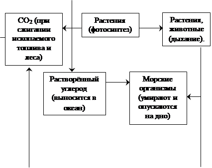 1. Биогеохимические круговороты. В отличие от энергии, которая однажды использованная организмом, превращается в тепло и теряется для экосистемы, вещества циркулируют в биосфере, что и называется биогеохимическими круговоротами. Из 90 с лишним элементов, встречающихся в природе, около 40 нужны живым организмам. Наиболее важные для них и требующиеся в больших количествах: углерод, водород, кислород, азот. Кислород поступает в атмосферу в результате фотосинтеза и расходуется организмами при дыхании. Азот извлекается из атмосферы благодаря деятельности азотофиксирующих бактерий и возвращается в неё другими бактериями. Круговороты элементов и веществ осуществляются за счёт саморегулирующих процессов, в которых участвуют все составные части экосистем. Эти процессы являются безотходными. В природе нет ничего бесполезного или вредного, даже от вулканических извержений есть польза, так как с вулканическими газами в воздух поступают нужные элементы, например, азот. Существует закон глобального замыкания биогеохимического круговорота в биосфере, действующий на всех этапах её развития, как и правило увеличения замкнутости биогеохимического круговорота в ходе сукцессии. В процессе эволюции биосферы увеличивается роль биологического компонента в замыкании биогеохимического круговорота. Ещё большую роль на биогеохимический круговорот оказывает человек. Но его роль осуществляется в противоположном направлении. Человек нарушает сложившиеся круговороты веществ, и в этом проявляется его геологическая сила, разрушительная по отношению к биосфере на сегодняшний день. Когда 2 млрд. лет тому назад на Земле появилась жизнь, атмосфера состояла из вулканических газов. В ней было много углекислого газа и мало кислорода (если вообще был), и первые организмы были анаэробными. Так как продукция в среднем превосходила дыхание, за геологическое время в атмосфере накапливался кислород и уменьшалось содержание углекислого газа. Сейчас содержание углекислого газа в атмосфере увеличивается в результате сжигания больших количеств горючих ископаемых и уменьшения поглотительной способности «зелёного пояса». Последнее является результатом уменьшения количества самих зелёных растений, а также связано с тем, что пыль и загрязняющие частицы в атмосфере отражают поступающие в атмосферу лучи. В результате антропогенной деятельности степень замкнутости биогеохимических круговоротов уменьшается. Хотя она довольно высока (для различных элементов и веществ она не одинакова), но тем не менее не абсолютна, что и показывает пример возникновения кислородной атмосферы. Иначе невозможна была бы эволюция (наивысшая степень замкнутости биогеохимических круговоротов наблюдается в тропических экосистемах – наиболее древних и консервативных). Таким образом, следует говорить не об изменении человеком того, что не должно меняться, а скорее о влиянии человека на скорость и направление изменений и на расширение их границ, нарушающее правило меры преобразования природы. Последнее формулируется следующим образом: в ходе эксплуатации природных систем нельзя превышать некоторые пределы, позволяющие этим системам сохранять свойства самоподдержания. Нарушение меры как в сторону увеличения, так и в сторону уменьшения приводит к отрицательным результа