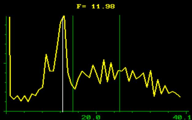 Рис. 1. Усредненный спектр одного из испытуемых Рис. 2. Изменение усредненного спектра одного из участников контрольной группы