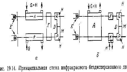 Рис. 2. Принципиальная схема инфракрасного бездисперсионного двухлучевого спектрометра с отрицательным фильтром. Анализаторы на основе двухлучевой схемы более распространены. Различают приборы двух основных типов (рис. 1 и рис. 2):