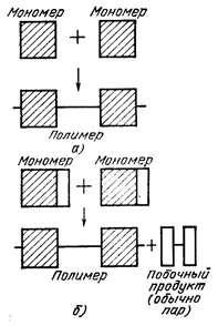 полимеры получают по реакции полимеризации, протекающей по схеме пМ При цепной полимеризации молекулярная масса нарастает почти мгновенно, промежуточные продукты неустойчивы, реакция чувствительна к присутствию примесей и требует, как правило, высоких давлений. Неудивительно, что такой процесс в естественных условиях невозможен, и все природные полимеры образовались иным путем. Современная химия создала новый инструмент — реакцию полимеризации, а благодаря ему большой класс термопластичных полимеров. Реакция полимеризации реализуется лишь в сложной аппаратуре специализированных производств, и термопластичные полимеры потребитель получает в готовом виде. Реакционно-способные молекулы термореактивных полимеров могут образоваться более простым и естественным путем — постепенно от мономера к димеру, потом к тримеру, тетрамеру и т. д. Такое объединение мономеров, их «конденсацию», называют реакцией поликонденсации; она не требует ни высокой чистоты, ни давлений, но сопровождается изменением химического состава, а часто и выделением побочных продуктов (обычно водяного пара) (рис. 2). Именно эта реакция реализуется в природе; она может быть легко осуществлена за счет лишь небольшого нагрева в самых простых условиях, вплоть до домашних. Такая высокая технологичность термореактивных полимеров предоставляет широкие возможности изготовлять различные изделия на нехимических предприятиях, в том числе на радиозаводах. Независимо от вида и состава исходных веществ и способов получения материалы на основе полимеров можно классифицировать следующим образом: пластмассы, волокниты, слоистые пластики, пленки, покрытия, клеи. Я не буду особо заострять внимание на всех этих продуктах, расскажу лишь о самых широко используемых. Необходимо показать, насколько велика потребность полимерных материалов в наше время, а, следовательно, и важность их переработки. Иначе проблема была бы просто необоснованна. 1.2 ПЛАСТИКИСлово "пластик" происходит из греческого языка и обозначает материал, который может быть спрессован или сформован в любую форму по выбору. Согласно этой этимологии даже глину можно было бы назвать пластиком, однако в действительности пластиками называют только изделия из синтетических материалов. Американское общество испытаний и материалов определяет, что такое пластик, следующим образом: "это любой представитель широкого круга разнообразных материалов, полностью или частично органических по составу, которому можно придать необходимую форму при воздействии температуры и (или) давления". Известны сотни пластиков. В табл. 1 представлены основные их виды и приведены отдельные представители каждого из видов. Следует отметить, что в настоящее время не существует единого способа описания всего разнообразия пластиков ввиду их многочисленности. Таблица 1. Основные типы пластиков