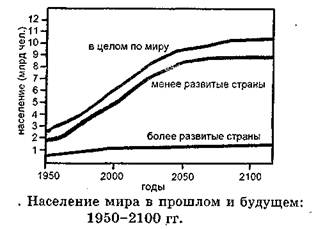 главные направления взаимодействия общества и окружающей — рост народонаселения; — потребление природных ресурсов; — загрязнение биосферы. 1. Рост народонаселения| Последние 150 лет население Земли росло и продолжает расти феноменальными, взрывообразными темпами. Цифры говорят сами за себя. Время удвоения численности населения: 1. 0-900 г. н.э. - 160-320 млн = 900 лет. 2. 900-1700 г. н.э. - 320-600 млн = 800 лет. 3. 1700-1850 г. н.э. - 600-1200 млн = 150 лет. 4. 1850-1950 г. н.э. - 1200-2500 млн = 100 лет. 5. 1950-1990 г. н.э. - 2500*5000 млн = 40 лет. Время увеличения на 1 млд: 1. 1 млрд – 1820 г. = 18 000 лет 2. 2 млрд – 1927 г. = 100 лет 3. 3 млрд – 1960 г. = 33 г. 4. 4 млрд = 1976 г. = 16 лет 5. 5 млрд – 1990 г. = 14 лет 6. 6 млрд – 1999 г. = 9 лет Ежегодный прирост населения составляет 1,7%. Еженедельный прирост при этом составляет 1,7 млн человек, ежедневный — 247 000, а ежечасный — 10 270 человек. Эксперты по народонаселению предсказывают, что если не