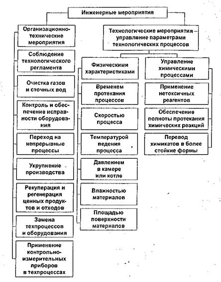 Классификация инженерных мероприятий, направленных на охрану окружающей среды Плановые мероприятия рассчитаны на длительную перспективу с учетом развития производства непроизводительной инфраструктуры крупных природно-промышленных систем. К ним относятся выбор месторасположения новых производств с учетом взаимного расположения других источников загрязнений атмосферы; передислокация из городов и поселков предприятий с высокой интенсивностью вредного воздействия; выбор места расположения отвалов и свалок; перемещение рекреационных территорий, объектов культурного назначения из зон воздействия и влияния предприятий в чистые зоны; изменение путей и режимов движения транспорта; устройство санитарно-защитных зон. К подгруппе оперативных относятся мероприятия, применяемые в экстремальных ситуациях, возникающих на производстве или в природной среде. Экстремальные ситуации на производстве обычно сопровождаются авариями (взрывы, пожары, разрывы трубопроводов) и приводят к залповым выбросам и сбросам, загрязняющим окружающую среду. Эти принципиальные направления основаны на цикличности материальных ресурсов и заимствованы у природы, где, как известно, действуют замкнутые циклические процессы. Технологические процессы, в которых в полной мере учитываются все взаимодействия с окружающей средой и приняты меры к предотвращению отрицательных последствий, называют экологизированными. Подобно любой экологической системе, где вещество и энергия расходуются экономно и отходы одних организмов служат важным условием существования других, производственный экологизированный процесс, управляемый человеком, должен следовать биосферным законам, и в первую очередь закону круговорота веществ. Принципиально новый подход к развитию всего промышленного и сельскохозяйственного производства — создание малоотходной и безотходной технологии. Понятие «полностью безотходная технология» условное, так как ни одно производство невозможно без отходов. Даже природные круговые процессы сопровождаются образованием отходов. Малоотходные и безотходные технологические процессы и системы должны функционировать таким образом, чтобы не нарушать естественного хода процессов, протекающих в природе. Разработаны следующие рекомендации по созданию малоотходных и ресурсосберегающих технологий: - все производственные процессы должны осуществляться при минимальном числе технологических этапов, поскольку на каждом из них образуются отходы и теряется сырье; - технологические процессы должны быть непрерывными, что позволяет наиболее эффективно использовать сырье и энергию; - единичная мощность технологического оборудования должна быть оптимальной, что соответствует максимальному коэффициенту полезного действия и минимальным потерям; - при разработке нового технологического оборудования необходимо предусматривать широкое использование автоматических систем на базе компьютерной техники, обеспечивающих оптимальное ведение технологических процессов с минимальным выходом вредных веществ; - выделяющаяся в различных технологических процессах теплота должна быть полезно использована, что позволит сэкономить энергоресурсы, сырье и снизят тепловую нагрузку на окружающую среду. С учетом этих общих рекомендаций можно определ