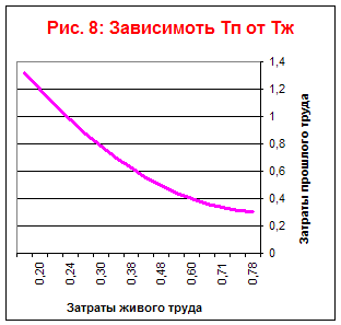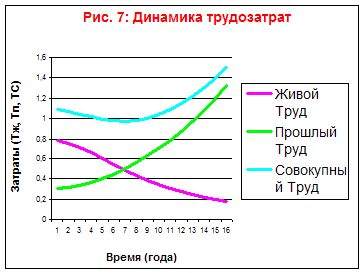 Из данного графика видно, что данный технологический процесс является ограниченным в своём развитии. Экономический предел накопления прошлого труда наступит через семь лет.