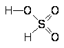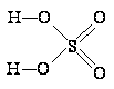 Рис. 12. Схема водородных связей в кристалле H2SO4. Моногидрат может быть получен кристаллизацией концентрированной серной кислоты при -10 °С. Образующие его кристалл молекулы (НО)2SO2 соединены друг с другом довольно сильными (25 кДж/моль) водородными связями, как это схематически показано на рис. 12. Сама молекула (НО)2SO2 имеет структуру искаженного тетраэдра с атомом серы около центра и характеризуется следующими параметрами: (d(S-ОН) = 154 пм, РНО-S-ОН = 104°, d(S=O) = 143 пм, РOSO = 119°. В ионе HOSO3-, d(S-ОН) = 161 и d(SO) = 145 пм, а при переходе к иону SO42- тетраэдр приобретает правильную форму и параметры выравниваются [d(SO) = 148 пм].Температура плавления моногидрата равна 10,37 °С при теплоте плавления 10,5 кДж/моль. В обычных условиях он представляет собой очень вязкую жидкость с весьма высоким значением диэлектрической проницаемости (e = 100 при 25 °С). Незначительная собственная электролитическая диссоциация моногидрата протекает параллельно по двум направлениям: [Н3SO4+]·[НSO4-] = 2·10-4 и [Н3О+]·[НS2О7-] = 4·10-5. Его молекулярно-ионный состав может быть приближенно охарактеризован следующими данными (в %):